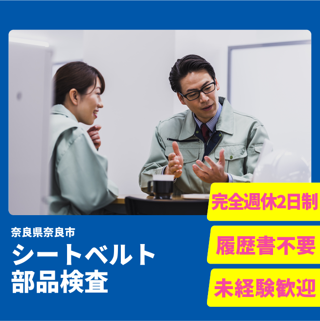 給与詳細 月収例 194,300円 時給例 1,340円 勤務地 奈良県奈良市 仕事内容 【業務内容】自動部品製造メーカーでの製品検査業務