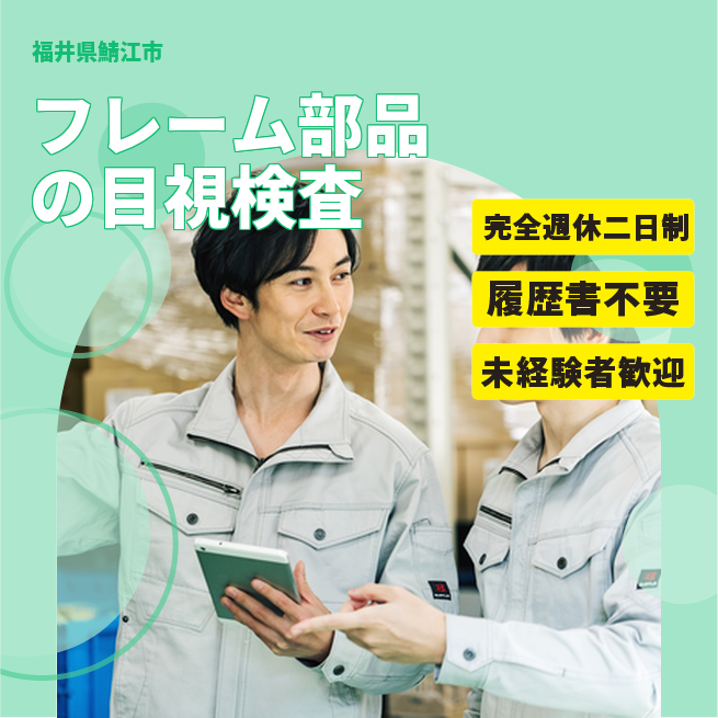 給与詳細 月収例 197,000円 時給例 1,120円 勤務地 福井県鯖江市 仕事内容 【業務内容】
