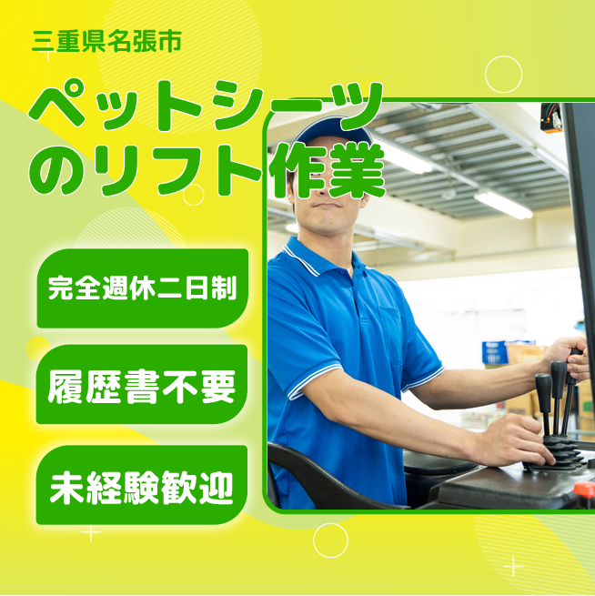給与詳細 月収例 261,300円 日給例 10,720円 勤務地 三重県名張市 仕事内容 ペットシーツ製造会社でのお仕事です。カウンターリフトのお仕事をお任せします。★資格を活かして働きませんか?★