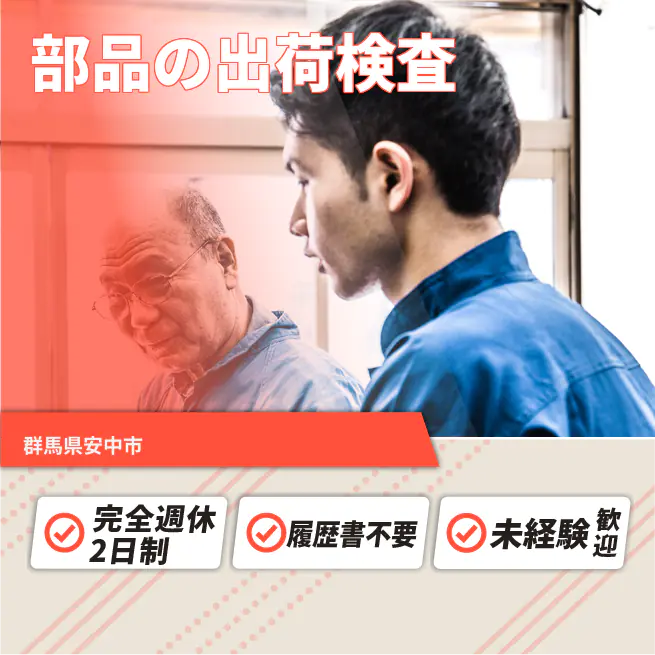 給与詳細 月収例 216,000円 日給例 10,800円 勤務地 群馬県安中市 仕事内容 【業務内容】