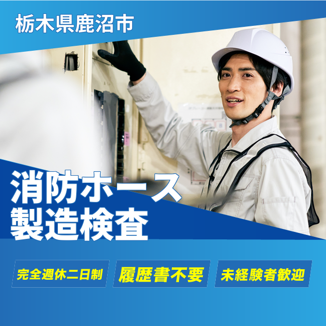 給与詳細 月収例 168,000円 時給例 1,250円 勤務地 栃木県鹿沼市 仕事内容 消防用ホースの製造 内張加工