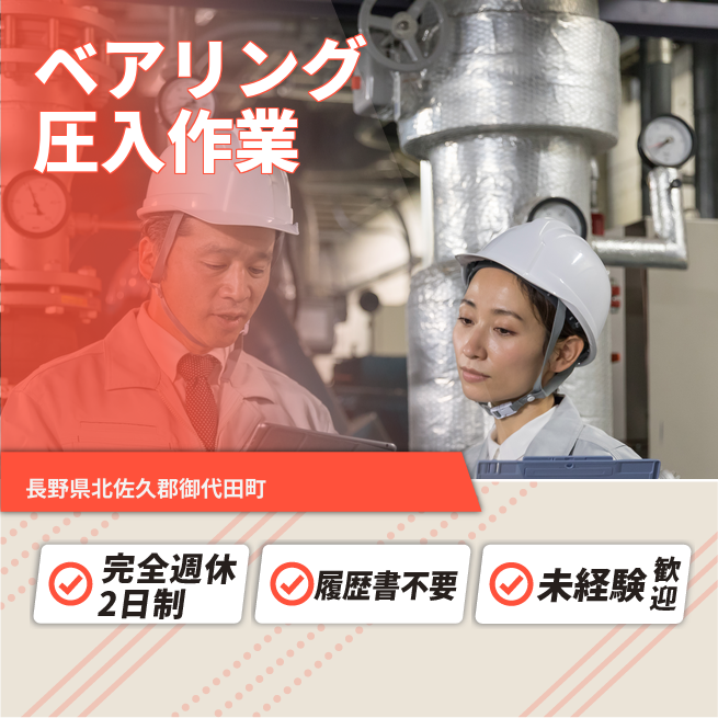 給与詳細 月収例 250,000円 日給例 12,500円 勤務地 長野県北佐久郡御代田町 仕事内容 【業務内容】