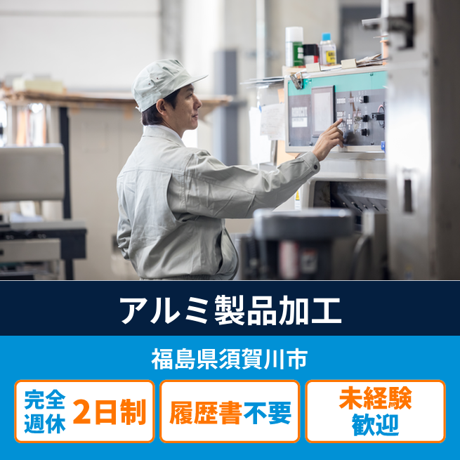 給与詳細 例 0円 日給例 10,400円 勤務地 福島県須賀川市 仕事内容 アルミ製品の切断・加工・クリーニング・検査・その他付帯業務を行っていただきます。