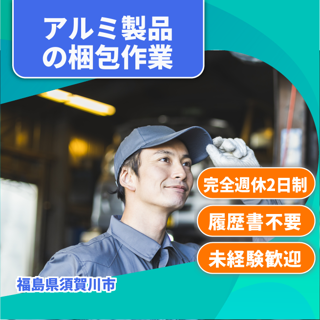 給与詳細 月収例 253,500円 日給例 10,400円 勤務地 福島県須賀川市 仕事内容 アルミフレーム製造・加工会社にてアルミ製品ピッキング及び梱包業務を行っていただきます。出荷準備の積み込み作業も業務に含まれます。