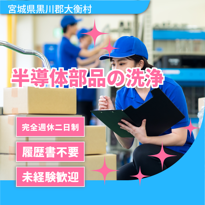 給与詳細 月収例 240,000円 時給例 1,600円 勤務地 宮城県黒川郡大衡村 仕事内容 半導体部品の洗浄、バリ取り、検査、シール面の鏡面研磨作業などのお仕事です。