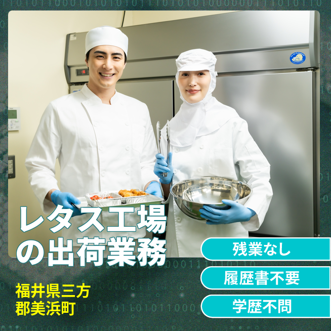 給与詳細 月収例 192,000円 時給例 1,200円 勤務地 福井県三方郡美浜町 仕事内容 新しい全自動のレタス工場での業務です。