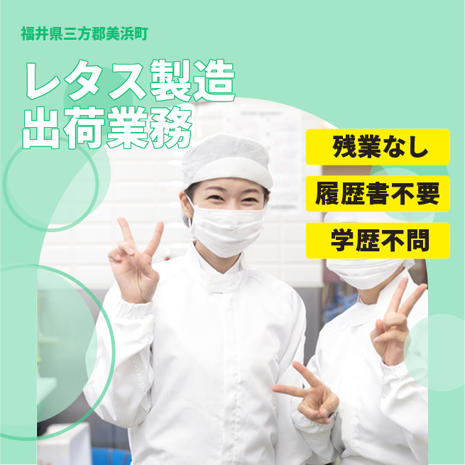 時給例:1200円 応募の流れ 本ページ内<応募する>ボタンより、必要項目をご入力の上、ご応募ください。 勤務地 【勤務地】福井県三方郡美浜町- 勤務時間 【勤務地】8:30~17:00 福利厚生 残業手当 公開日 2025年01月01日 部屋タイプ 単身者向けの1Rやカップル・家族向け2Kのルーム、ペットOKなど幅広いニーズに合わせてご用意しております! 家具・備品 テレビ・冷蔵庫・エアコンなどの家電を完備!すぐに新生活が始められます!※寮による その他 カップル・家族寮:寮なし