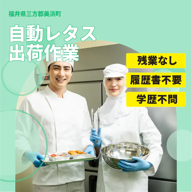 時給例:1200円 応募の流れ 本ページ内<応募する>ボタンより、必要項目をご入力の上、ご応募ください。 勤務地 【勤務地】福井県三方郡美浜町- 勤務時間 【勤務地】8:30~17:00 福利厚生 残業手当 公開日 2025年01月01日 部屋タイプ 単身者向けの1Rやカップル・家族向け2Kのルーム、ペットOKなど幅広いニーズに合わせてご用意しております! 家具・備品 テレビ・冷蔵庫・エアコンなどの家電を完備!すぐに新生活が始められます!※寮による その他 カップル・家族寮:寮なし