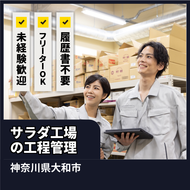 スーパーで販売するサラダ製品のトッピング工程での工程管理業務を担当いただきます。