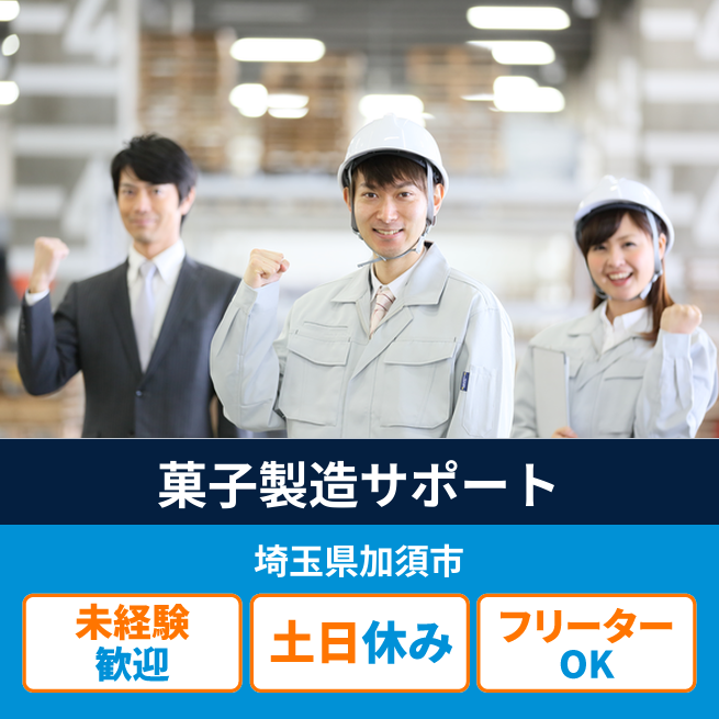23.8~25.7万円 交通費 支給あり 応募の流れ 本ページ内<応募する>ボタンより、必要項目をご入力の上、ご応募ください。 勤務地 【勤務地】埼玉県加須市- 勤務時間 【勤務地】日勤