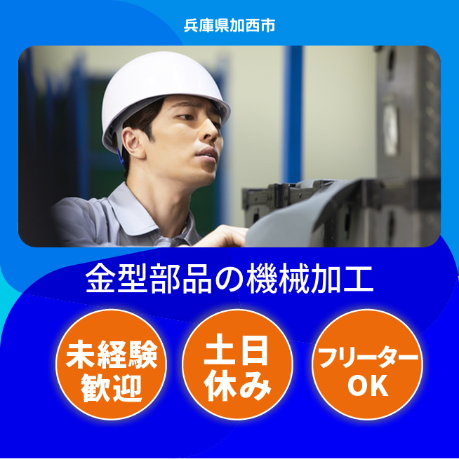 給与詳細 月収例 225,000円 日給例 11,250円 勤務地 兵庫県加西市 仕事内容 ウィルオブ・ワークの正社員として、金型部品製造工場で勤務いただきます。