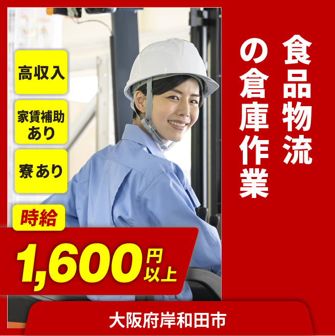 給与詳細 月収例 270,000円 時給例 1,687円 勤務地 大阪府岸和田市 仕事内容 ウィルオブ・ワークの正社員として食品物流センターの取引先で勤務いただきます。