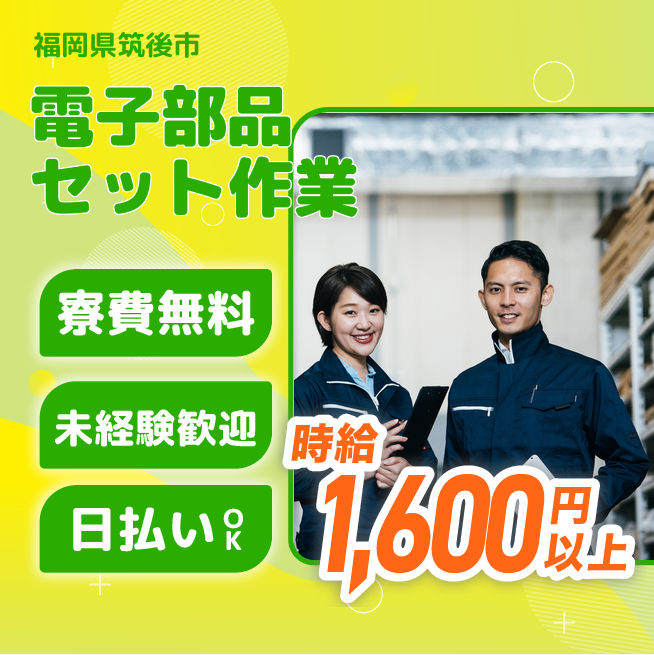 ※7ヵ月以降も寮費補助あり(規程あり) 【電子部品の材料セット・機械補助】