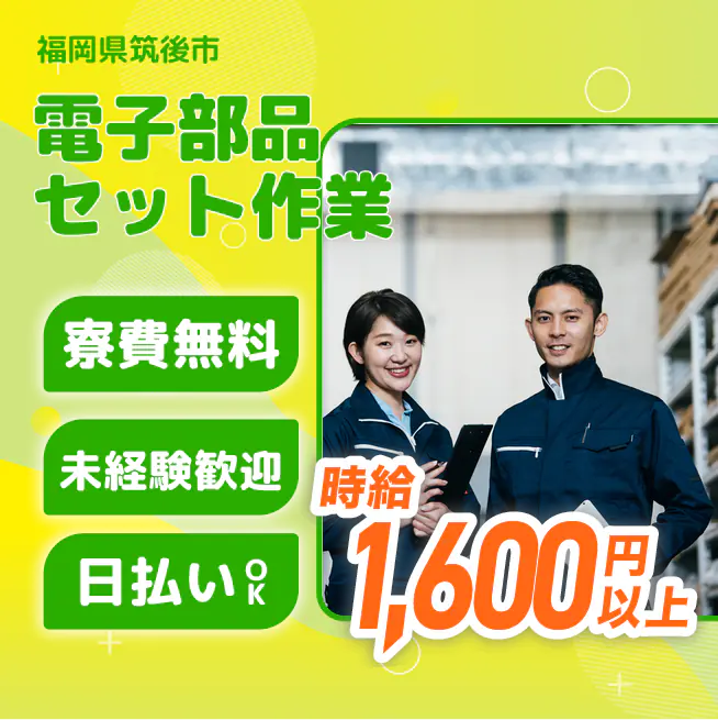 給与詳細 月収例 270,000円 時給例 1,688円 勤務地 福岡県筑後市 仕事内容 【業務内容】