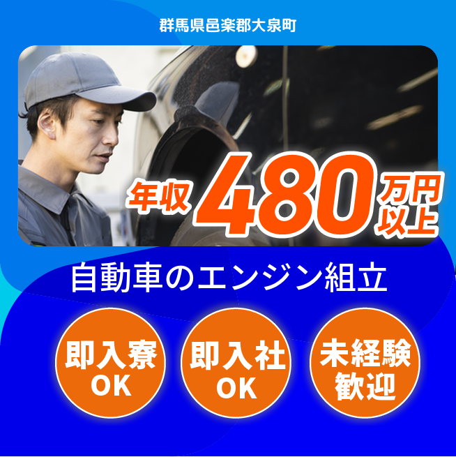 給与詳細 年収例 5,404,200円 月収例 450,350円 勤務地 群馬県邑楽郡大泉町 仕事内容 【自動車エンジン組立加工(寮費無料)】