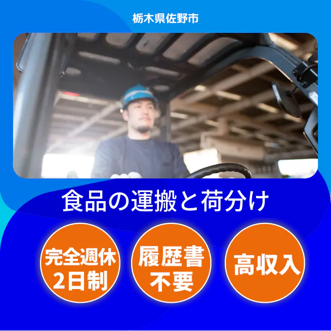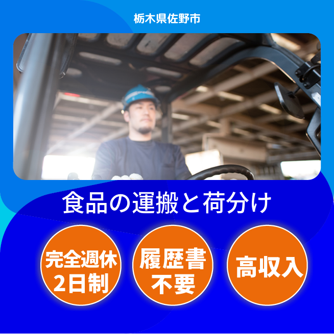 給与詳細 月収例 282,750円 日給例 11,600円 勤務地 栃木県佐野市 仕事内容 【業務内容】