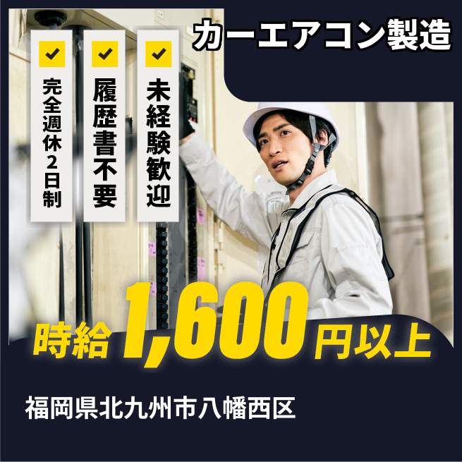 企業 デンソー九州 給与詳細 月収例 300,000円 日給例 15,000円 勤務地 福岡県北九州市八幡西区 仕事内容 自動車カーエアコンの簡単な製造業務