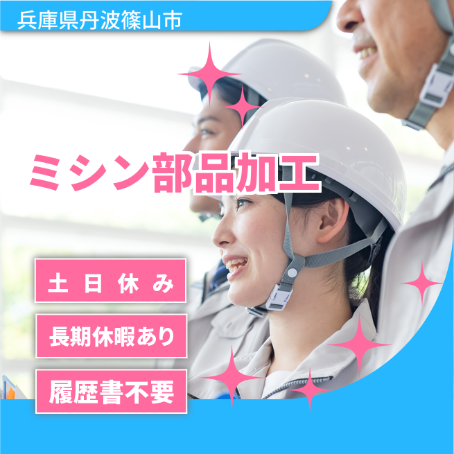 夏季 公開日 2025年10月01日 近年移住者が多い丹波篠山地域でのお仕事です。 有名工業用ミシンの組立作業や部品の加工作業です。 スキルアップを目指す方必見です。日々スキルが自信につながる作業内容です。