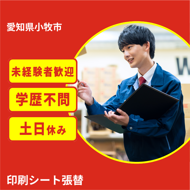 給与詳細 月収例 261,450円 日給例 11,200円 勤務地 愛知県小牧市 仕事内容 印刷シートの張替え作業 乾燥罐への詰め入れ詰めだし作業等