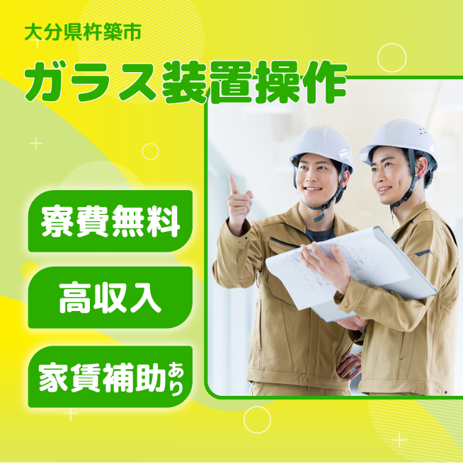 給与詳細 月収例 255,500円 日給例 11,200円 勤務地 大分県杵築市 仕事内容 ガラス製造装置の機械操作(他台持ちで作業)、チョコ停解除等、品質調整しながらの製造作業。