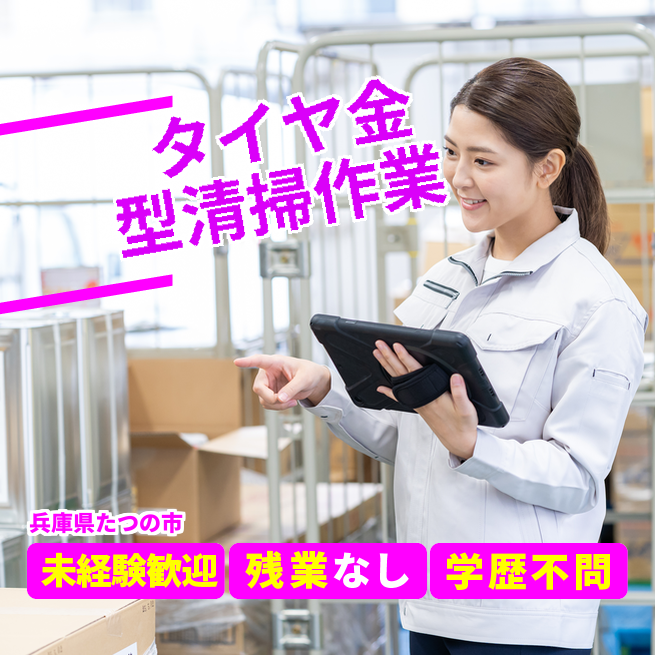 給与詳細 月収例 240,000円 日給例 12,000円 勤務地 兵庫県たつの市 仕事内容 タイヤ金型類のベントホール清掃作業(電動ドリルによる残ゴム除去)になります。