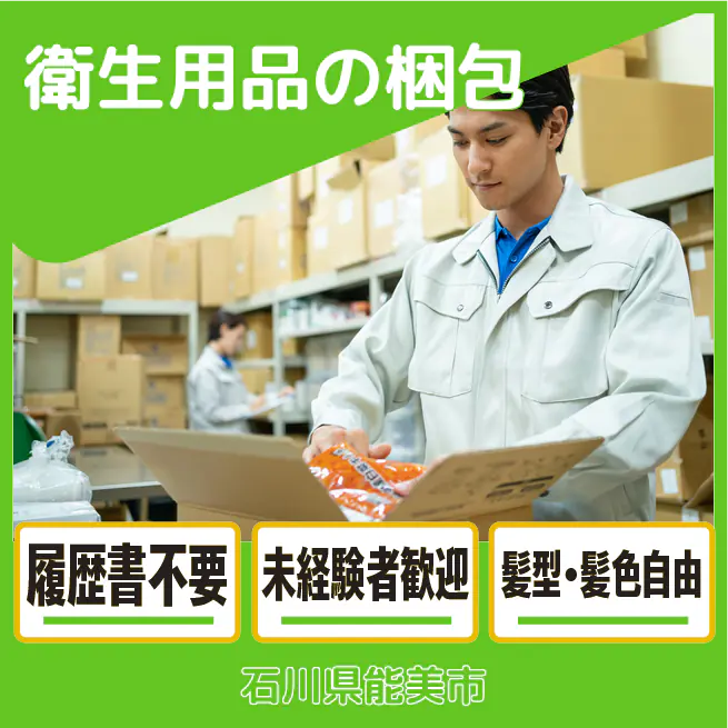 給与詳細 月収例 222,400円 日給例 11,120円 勤務地 石川県能美市 仕事内容 ・マスクや歯ブラシ等の衛生用品のピッキング・仕分け