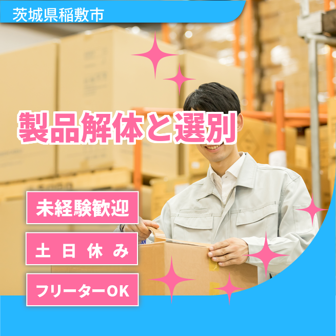 - 指定された部品を手順に従って解体し、選別する作業