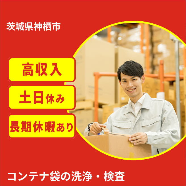 給与詳細 月収例 224,000円 日給例 11,200円 勤務地 茨城県神栖市 仕事内容 【コンテナバックの洗浄、検査作業】
