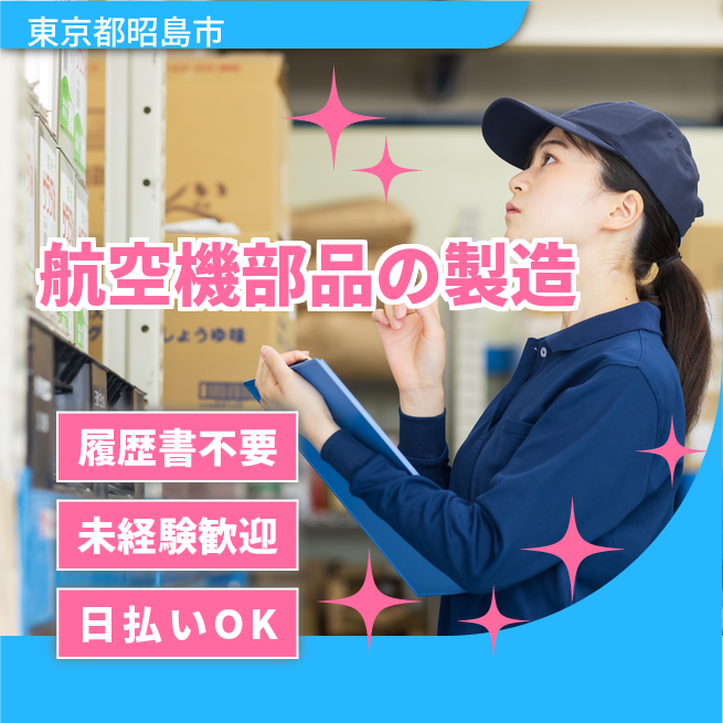 給与詳細 月収例 232,000円 日給例 11,600円 勤務地 東京都昭島市 仕事内容 【職種】