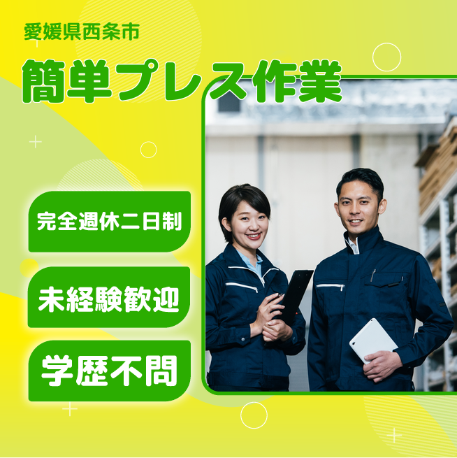 給与詳細 月収例 192,000円 日給例 9,600円 勤務地 愛媛県西条市 仕事内容 【業務内容】