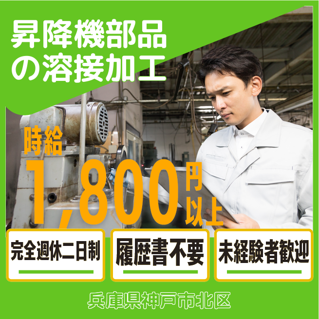 基本給:1,800円×151.8H=273,240円 残業手当:2,250円×30H=67,500円 計340,740円 交通費 支給あり 応募の流れ 本ページ内<応募する>ボタンより、必要項目をご入力の上、ご応募ください。 勤務地 【勤務地】兵庫県神戸市北区赤松台2丁目 勤務時間 【勤務地】8:50~17:15(実働7時間35分) 必須資格 半自動溶接の経験 TIG溶接の経験 が必須となります。 福利厚生 ●社会保険完備