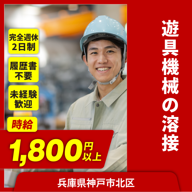 基本給:1,800円×151.8H=273,240円 残業手当:2,250円×30H=67,500円 計340,740円 交通費 支給あり 応募の流れ 本ページ内<応募する>ボタンより、必要項目をご入力の上、ご応募ください。 勤務地 【勤務地】兵庫県神戸市北区赤松台2丁目 勤務時間 【勤務地】8:50~17:15(実働7時間35分) 必須資格 半自動溶接の経験 TIG溶接の経験 が必須となります。 福利厚生 ●社会保険完備