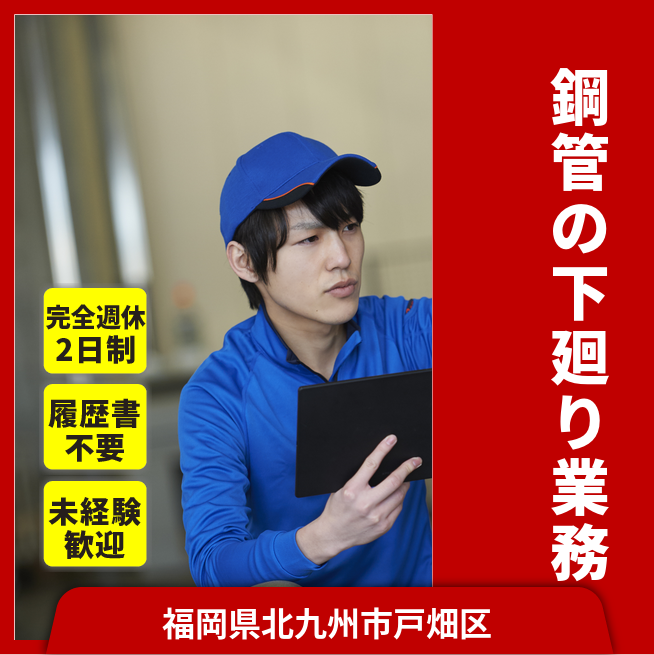 給与詳細 月収例 224,000円 日給例 11,200円 勤務地 福岡県北九州市戸畑区 仕事内容 【業務内容】