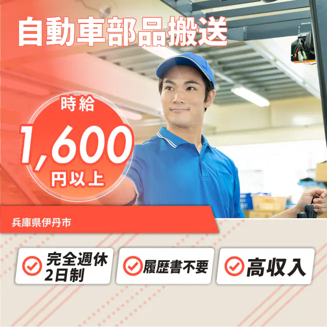 給与詳細 年収例 4,032,000円 月収例 336,000円 勤務地 兵庫県伊丹市 仕事内容 【業務内容】工場内での自動車部品の運搬と配置を担当する仕事です。