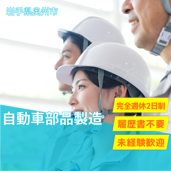 給与詳細 月収例 180,000円 時給例 1,100円 勤務地 岩手県奥州市 仕事内容 自動車部品の溶接機を使っての加工作業