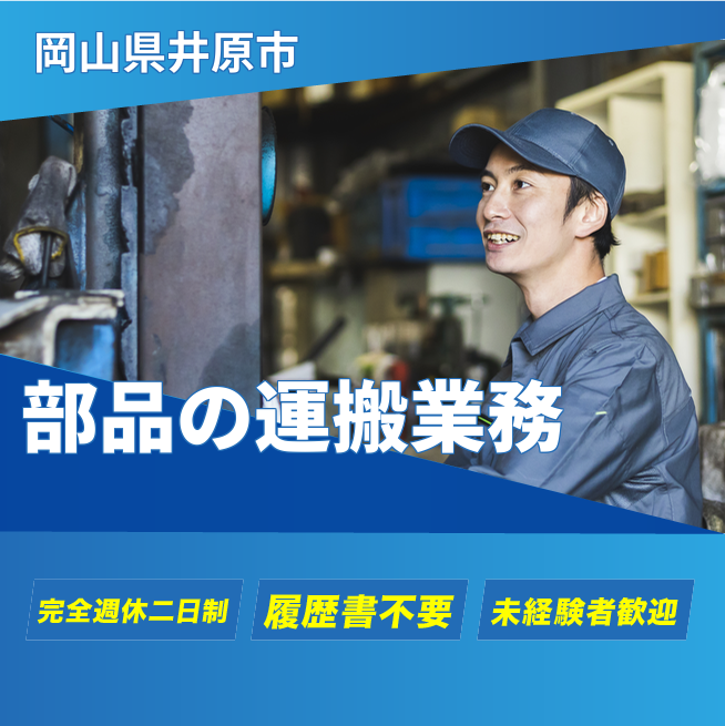 給与詳細 月収例 230,000円 日給例 11,500円 勤務地 岡山県井原市 仕事内容 自動車用部品や住宅福祉用部品の運搬業務