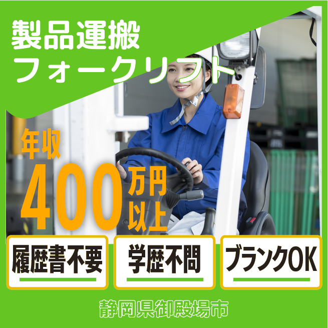 給与詳細 月収例 236,800円 日給例 11,840円 勤務地 静岡県御殿場市 仕事内容 フォークリフト業務