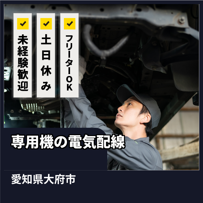 ※入社1年以降は27.5万円程度 交通費 支給あり 応募の流れ 本ページ内<応募する>ボタンより、必要項目をご入力の上、ご応募ください。 勤務地 【勤務地】愛知県大府市- 勤務時間 【勤務地】日勤