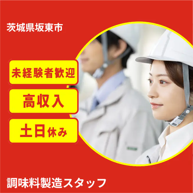 27.7~31.5万円 交通費 支給あり 応募の流れ 本ページ内<応募する>ボタンより、必要項目をご入力の上、ご応募ください。 勤務地 【勤務地】茨城県坂東市- 勤務時間 【勤務地】日勤