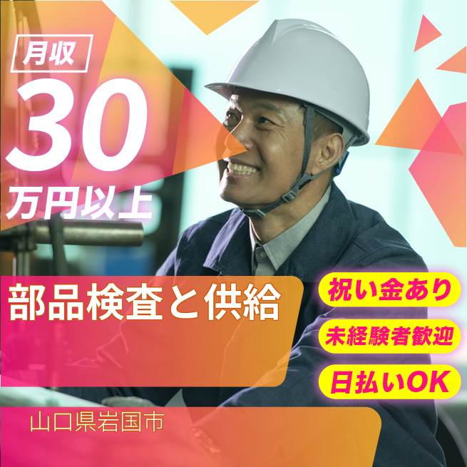 給与詳細 月収例 300,512円 日給例 10,560円 勤務地 山口県岩国市 仕事内容 【業務内容】