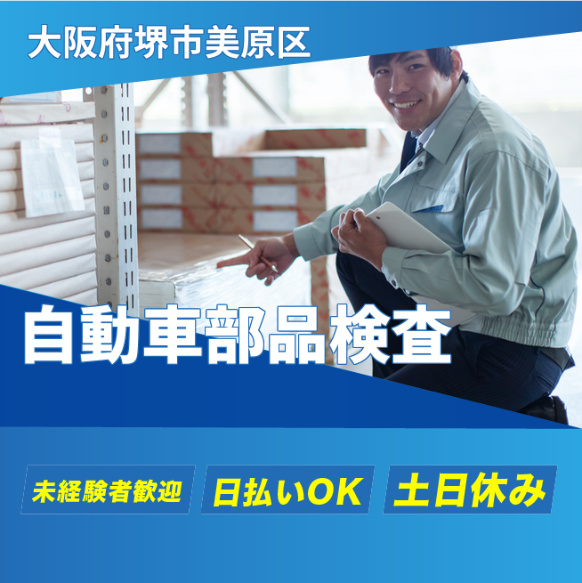 給与詳細 月収例 240,000円 日給例 10,320円 勤務地 大阪府堺市美原区 仕事内容 【部品の検査・検品】