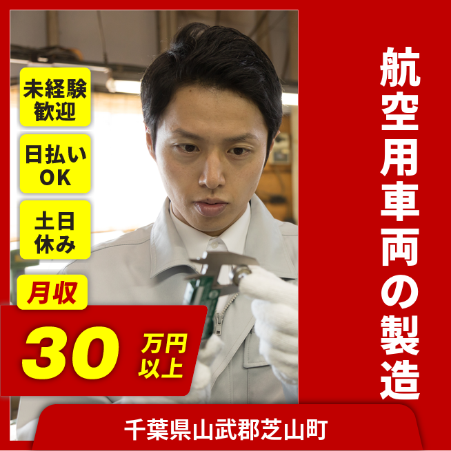 ◆日払い・仮払いOK(アプリでカンタン申請!) 交通費 支給あり 応募の流れ 本ページ内<応募する>ボタンより、必要項目をご入力の上、ご応募ください。 勤務地 【勤務地】千葉県山武郡芝山町大台 勤務時間 【勤務地】8:20~17:15(休憩60分)
