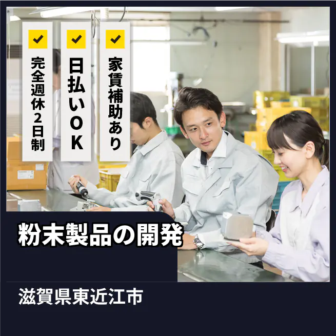 給与詳細 月収例 260,000円 日給例 12,000円 勤務地 滋賀県東近江市 仕事内容 【業務内容】