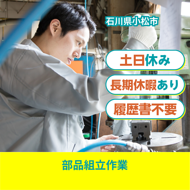 給与詳細 月収例 287,829円 日給例 10,250円 勤務地 石川県小松市 仕事内容 【組み立て工程】