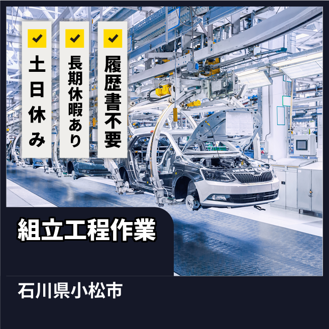 給与詳細 月収例 287,829円 日給例 10,250円 勤務地 石川県小松市 仕事内容 【業務内容】