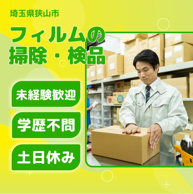 給与詳細 月収例 226,275円 日給例 10,500円 勤務地 埼玉県狭山市 仕事内容 使い終わった食品包装用のフィルムを掃除し検品したり、新品の梱包されたフィルムを複数人で移動したりします。