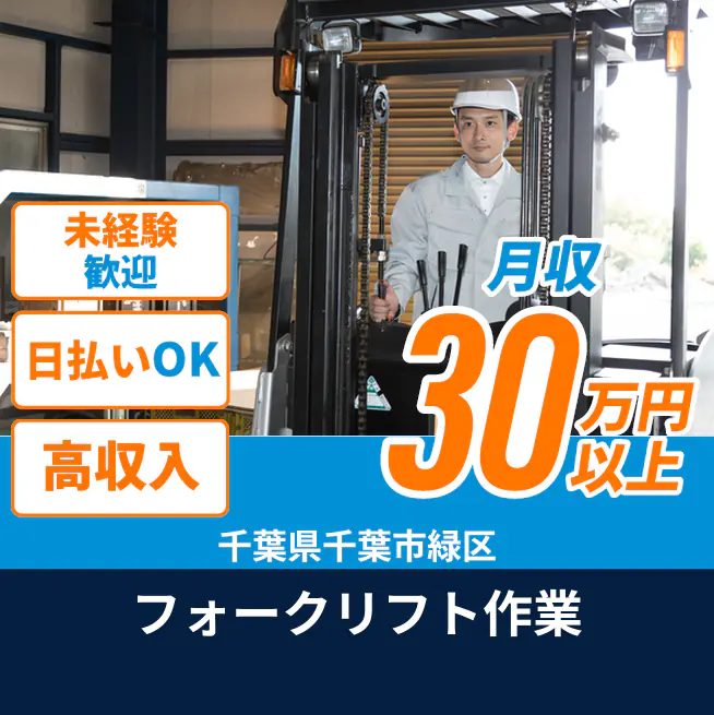 給与詳細 月収例 324,000円 時給例 1,600円 勤務地 千葉県千葉市緑区 仕事内容 【業務内容】