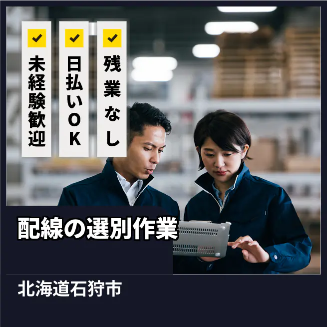 給与詳細 月収例 176,000円 時給例 1,100円 勤務地 北海道石狩市 仕事内容 【業務内容】