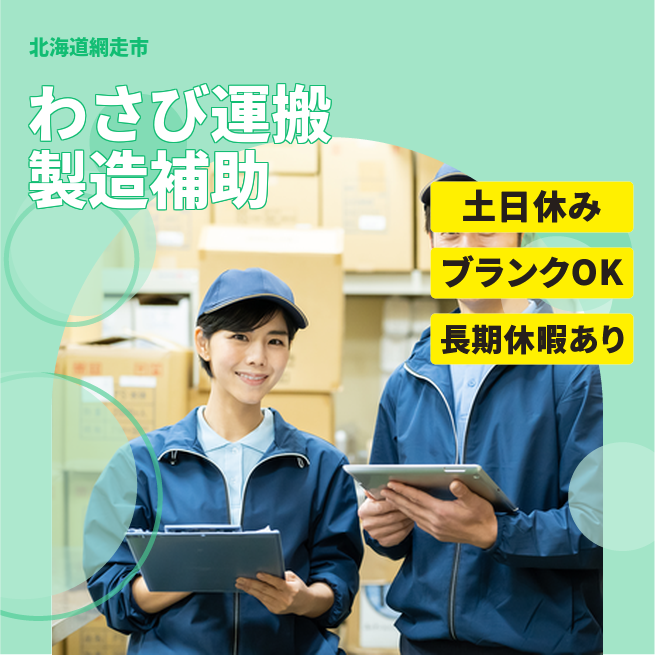 賞与手当含【退職手当】制度あり 交通費 支給あり 応募の流れ 本ページ内<応募する>ボタンより、必要項目をご入力の上、ご応募ください。 勤務地 【勤務地】北海道網走市呼人 勤務時間 【勤務地】《時間1》15:00~00:00