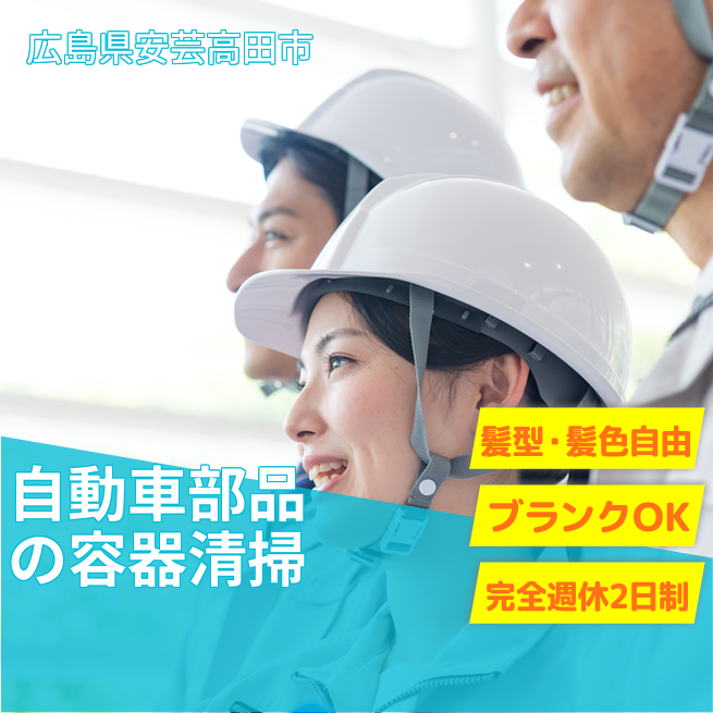 給与詳細 月収例 269,500円 日給例 13,475円 勤務地 広島県安芸高田市 仕事内容 自動車部品製造業務。